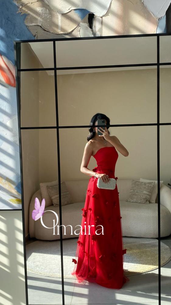فستان احمر فخم توب مورد بتدخيلة ورود
