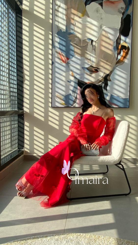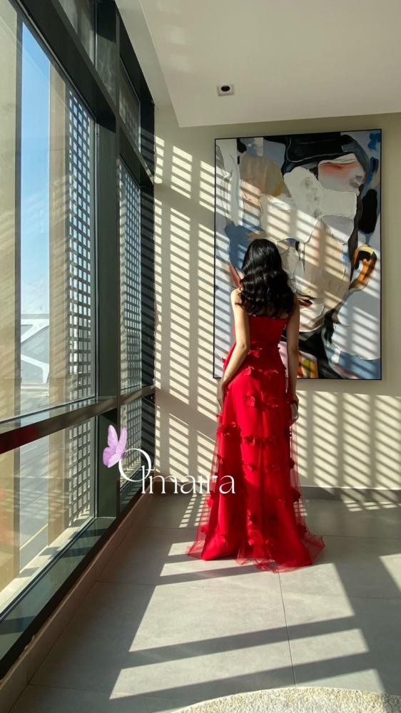 • لون أحمر جريء: يضيف الفستان الأحمر الطويل لمسة من الجرأة والأناقة مما يجعلكِ محط الأنظار في أي مناسبة.
