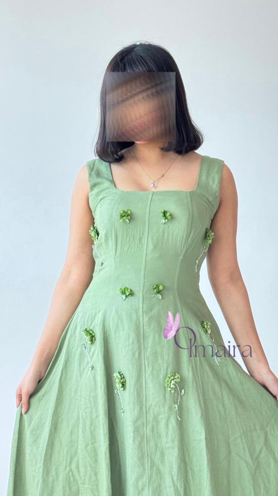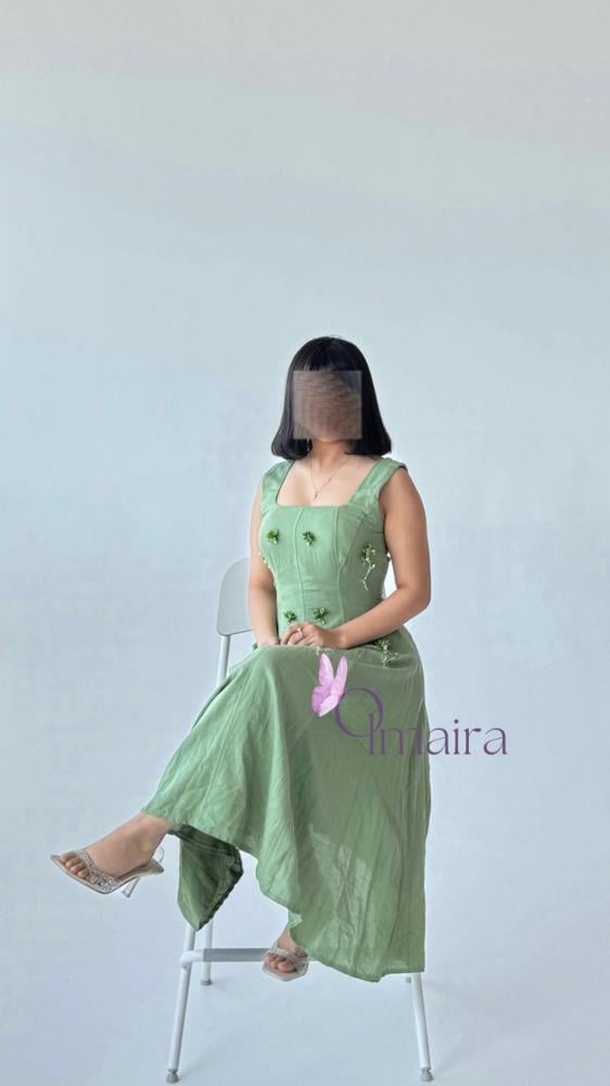 فستان تفاحي فاتح مصمم ليمنحك الجاذبية والرقي بأسلوب ناعم يجمع بين الأناقة والراحة. بلونه الأخضر التفاحي الحيوي وخامته الفاخرة، سيكون خيارك الأمثل لصباح العيد والمناسبات الخاصة.