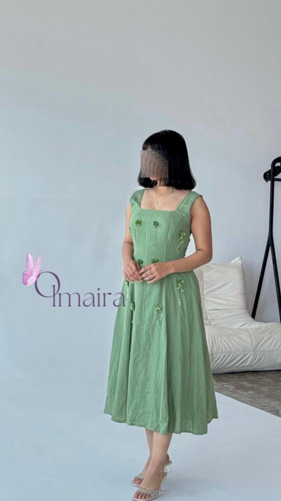- يأتي الفستان بلون أخضر تفاحي جذاب يمنحك إطلالة مفعمة بالحيوية والتألق. هذا اللون المميز يعكس الطاقة والانتعاش، كما أنه يتناسب مع مختلف درجات البشرة.