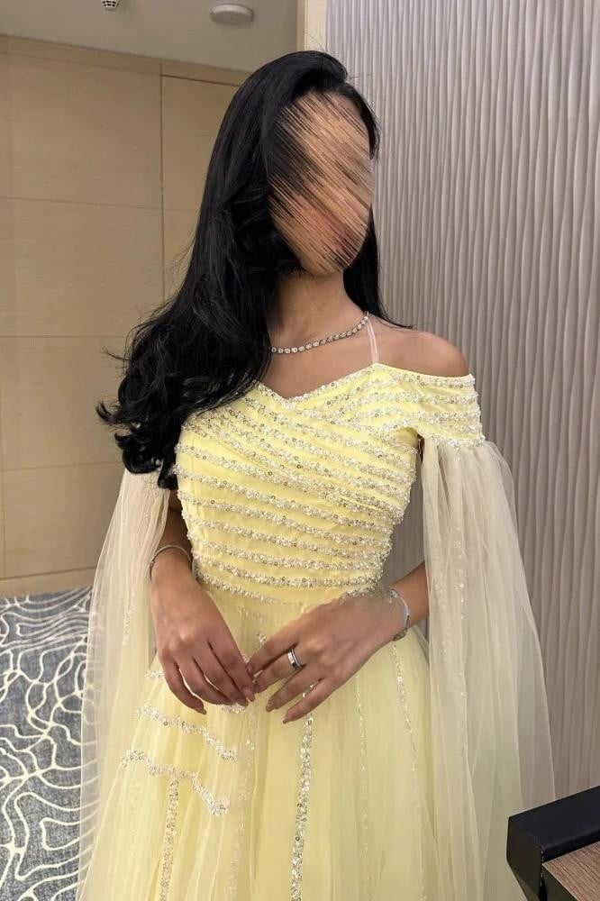 - يتميز فستان سهرة ليموني بتصميم ناعم يبرز أنوثتك برقيّ، مع لمسة فخامة تناسب الحفلات والسهرات.